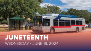 Juneteenth is coming up and we’ve got a few service modifications. On Wednesday, June 19, Trinity Metro buses and ACCESS paratransit will operate on Sunday schedules.