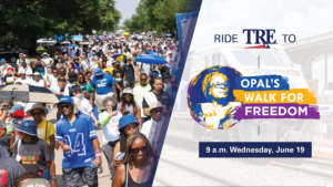 Celebrate Juneteenth in Dallas on Wednesday, June 19 with Opal Lee, a renowned activist. TRE offers a seamless connection to EBJ Union Station in downtown Dallas. Walk alongside Lee and fellow participants, celebrating Juneteenth and its historical significance.