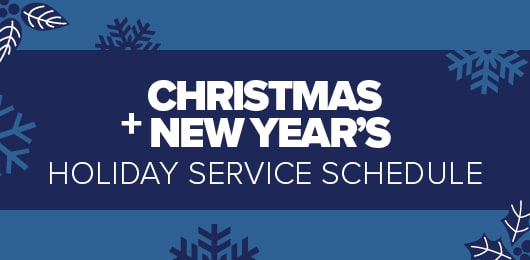 Trinity Metro services will operate on a modified service schedule on Christmas Day and New Year’s Day. TEXRail and The Dash will operate on regular schedules.