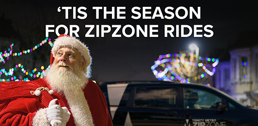 (FORT WORTH, TX – Nov. 21, 2023) – We are excited to announce that ZIPZONE will be operating on weekends in all zones between Nov. 25 and Dec. 17. The expanded hours are designed to provide riders with affordable, flexible travel during the holiday season to get where they need to go — whether that be for gift shopping, seeing friends and family, heading to a party car-free, or taking on extra shifts at work.